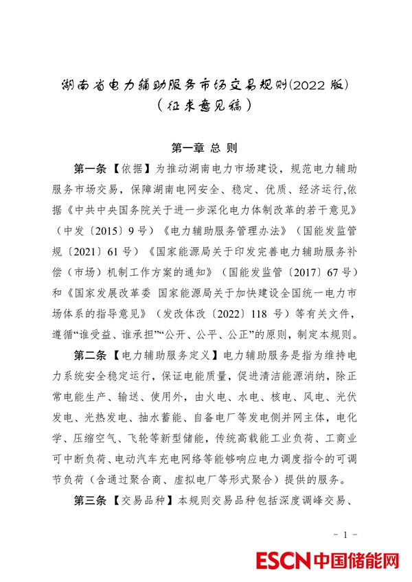 中國儲能網訊:近日國家能源局湖南監(jiān)管辦公室發(fā)布了《湖南省電力輔助服務市場交易規(guī)則(2022版)(征求意見稿)》。文件提出,深度調峰交易主體: