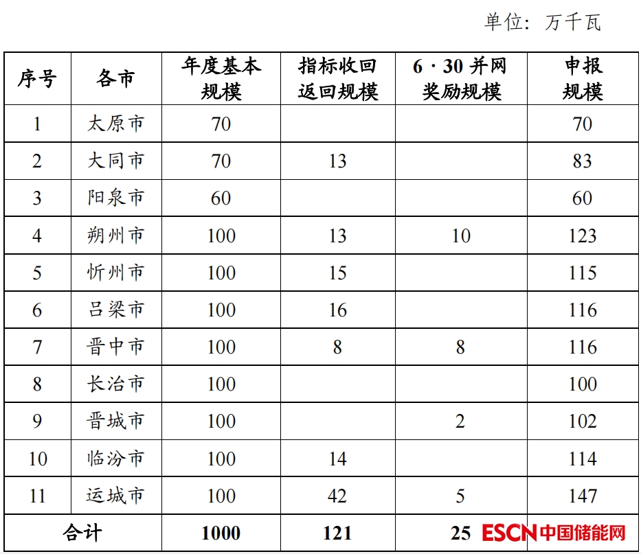 根據(jù)文件,2022年山西省擬安排10GW的保障性年度規(guī)模、1.21GW的指標(biāo)收回規(guī)模以及250MW的獎(jiǎng)勵(lì)規(guī)模(不含分布式)。此外,國(guó)家批復(fù)的《大同~懷來(lái)~天津北~天津南特高壓輸電通道配套電源方案》中,還配置了6GW風(fēng)光配套項(xiàng)目,但涉及到6區(qū)縣不再布局省內(nèi)保障性光伏項(xiàng)目。