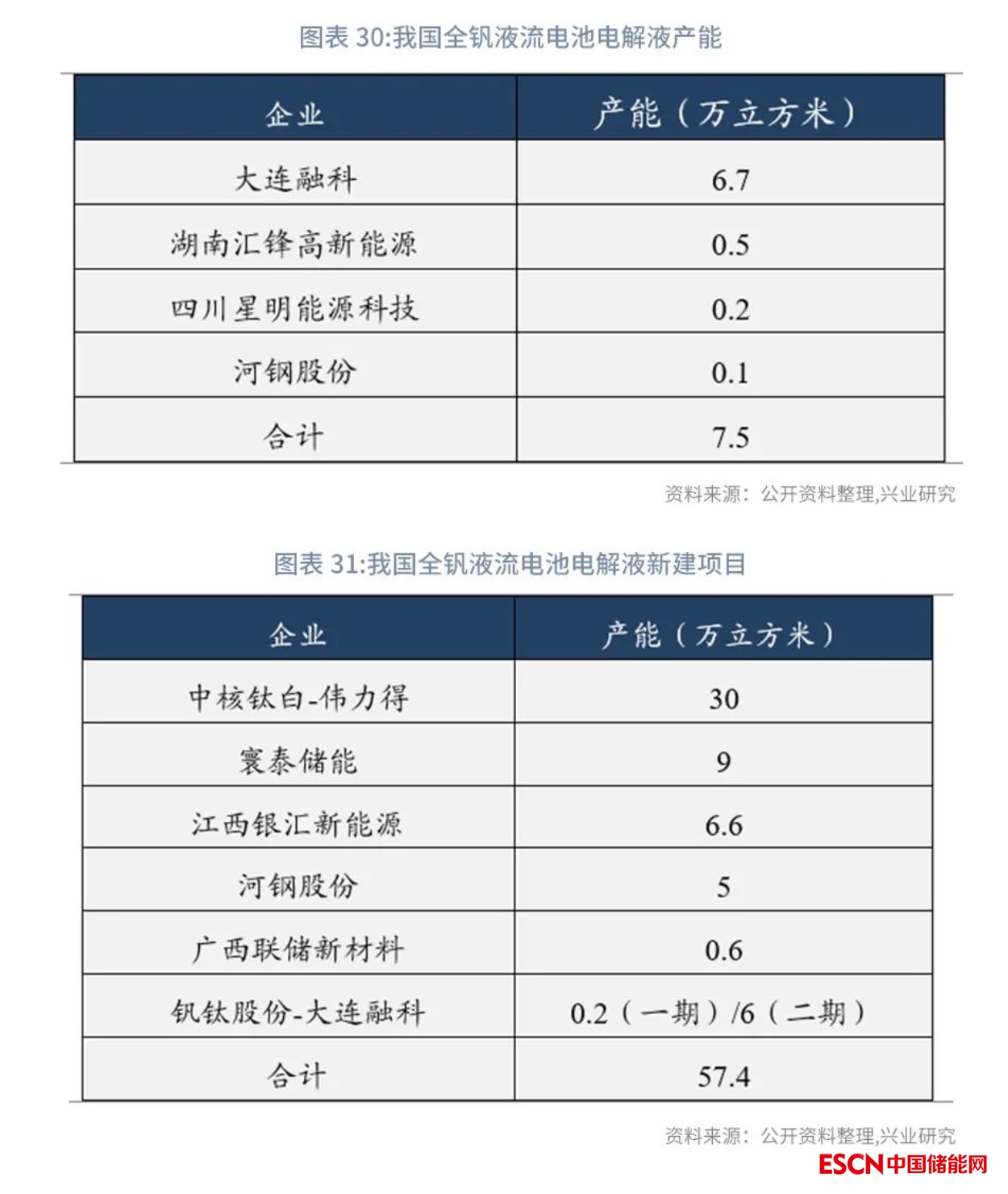 釩資源企業(yè)等積極入局全釩液流電池市場。我國全釩液流電池電解液產(chǎn)能約7.5萬立方米,主要的生產(chǎn)企業(yè)為大連融科,產(chǎn)能為6.7萬立方米。釩資源企業(yè)等積極布局釩電池電解液的制造,其中,中核鈦白與偉力得擬合作新建30萬立方米/年電解液項目,同時寰泰儲能、河鋼股份均有新建電解液的產(chǎn)能項目。目前,由于液流電池技術(shù)還集中在中游電堆制造企業(yè)手中,電解液生產(chǎn)多為電堆企業(yè)和釩資源企業(yè)合作,由電堆企業(yè)研發(fā)調(diào)配,委托釩資源企業(yè)代加工。