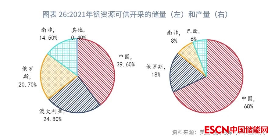 我國釩資源儲產(chǎn)量均居世界第一。據(jù)美國地質(zhì)勘探局數(shù)據(jù),2021年全球釩礦石已探明可供開采的儲量為2400萬噸,其中中國儲量為950萬噸,占比40%;2021年全球釩產(chǎn)量為10.7萬噸,其中中國產(chǎn)量7.3萬噸,占比68%,儲產(chǎn)量均居世界第一。