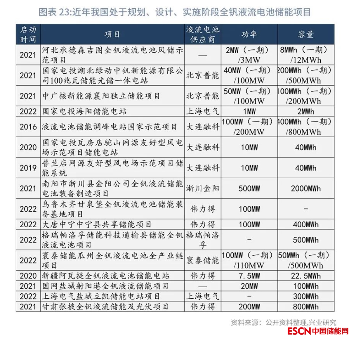 2020年以來,處于規(guī)劃、設(shè)計、實施階段的全釩液流電池儲能項目爆發(fā)式發(fā)展。2020 年至今,全國各地陸續(xù)規(guī)劃、開工了多個全釩液流電池儲能項目。