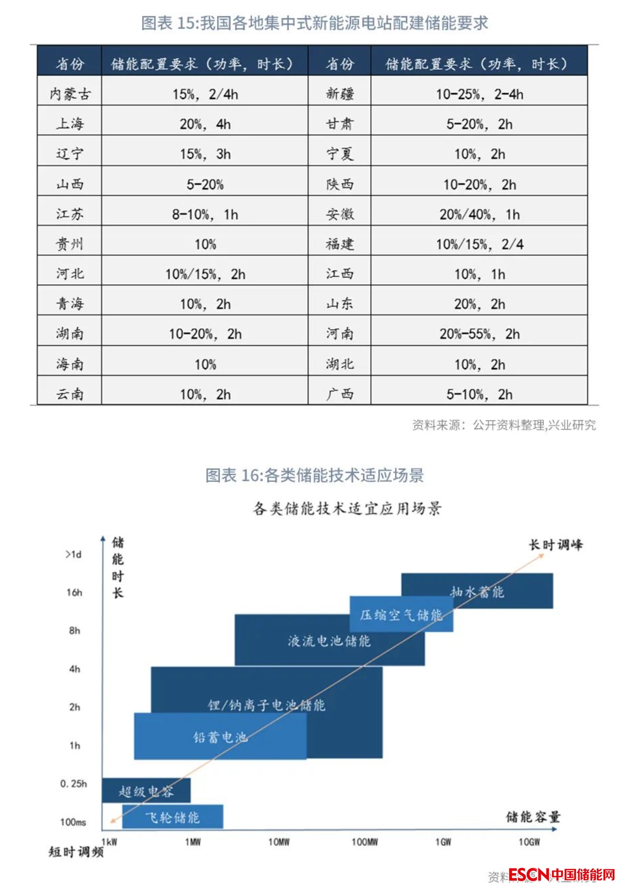國家明確通過市場化方式落實并網(wǎng)條件的可再生能源發(fā)電項目需配置4小時儲能系統(tǒng),新疆、內(nèi)蒙古等地已開始執(zhí)行該政策。2021年7月,國家發(fā)改委、國家能源局發(fā)布《關(guān)于鼓勵可再生能源發(fā)電企業(yè)自建或購買調(diào)峰能力增加并網(wǎng)規(guī)模的通知》提出,在電網(wǎng)企業(yè)承擔風電和太陽能發(fā)電等可再生能源保障性并網(wǎng)責任以外,仍有投資建設(shè)意愿的可再生能源發(fā)電企業(yè),鼓勵在自愿的前提下自建儲能或購買調(diào)峰資源增加并網(wǎng)規(guī)模,保證新建項目按照不低于功率15%、時長4小時的要求配置調(diào)峰能力,對于配置20%以上調(diào)峰能力的項目優(yōu)先并網(wǎng)。目前,我國各地依據(jù)自身新能源占比以及電力調(diào)節(jié)能力,來制定各自的新能源配儲比例和時長,新疆、內(nèi)蒙古、以及上海金山海上風電已要求配置4h儲能。