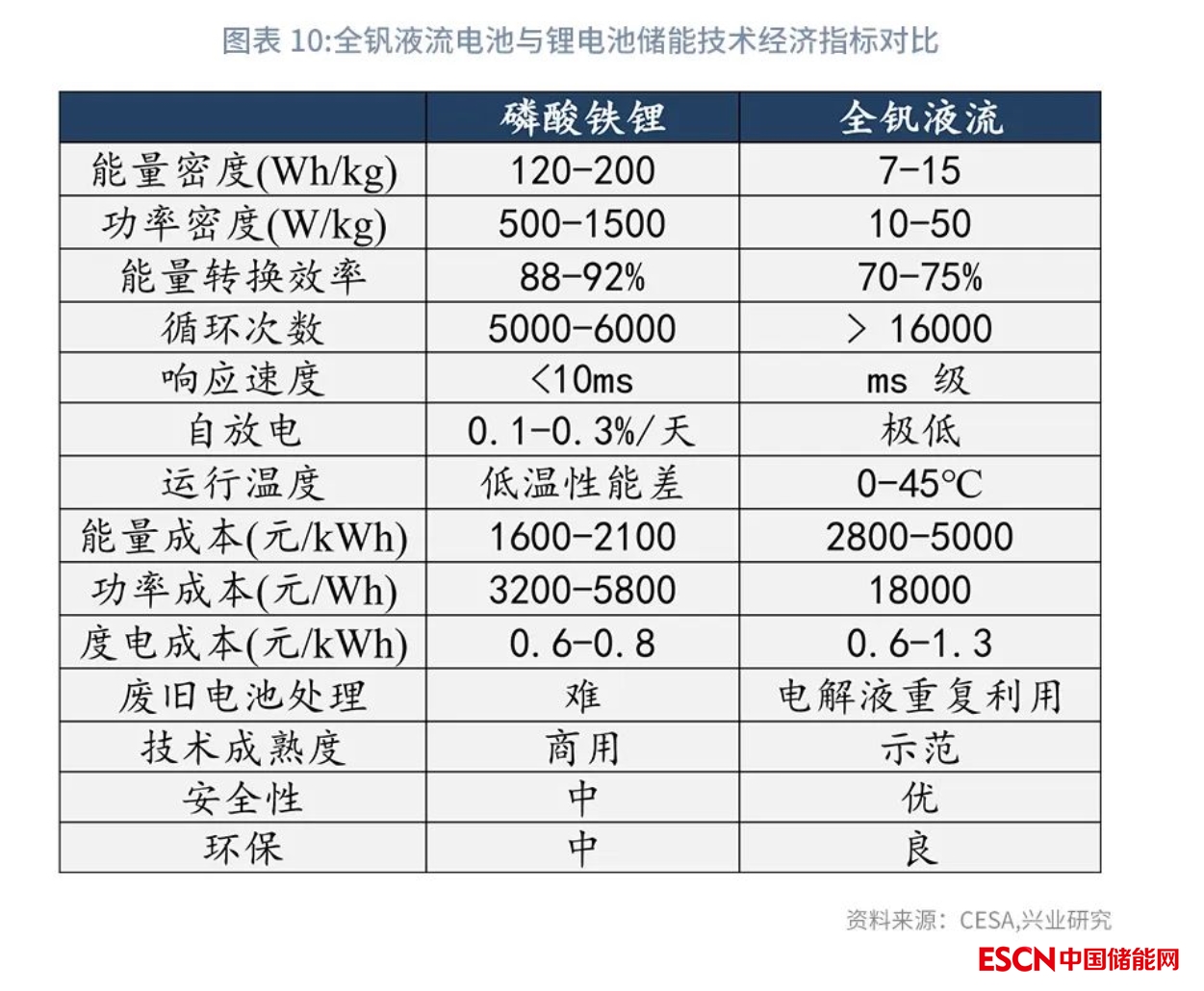 目前商用全釩液流電池循環(huán)次數(shù)可達16000次以上,日歷壽命25年,遠高于磷酸鐵鋰電池的6000次。全釩液流電池由于電池正負活性物質(zhì)分別只存在于正極和負極電解液中,在充放電過程中不存在復雜的固相反應, 因此電池壽命長。全釩液流電池循環(huán)次數(shù)可達16000次以上,電池使用壽命可達25年。加拿大VRB Power Systems商業(yè)化示范是運行時間最長的釩電池模塊,已正常運行超過9年,充放循環(huán)壽命超過18000次。日本住友電工 2005-2007年實施的4MW/6MWh全釩液流電池系統(tǒng)配合風場在三年間進行了20多萬次的充放電。大連融科儲能與國電龍源合作投運的5MW/10MWh 全釩液流電池系統(tǒng)從2012年并網(wǎng)至今運行10年,效率和容量均未見衰減。