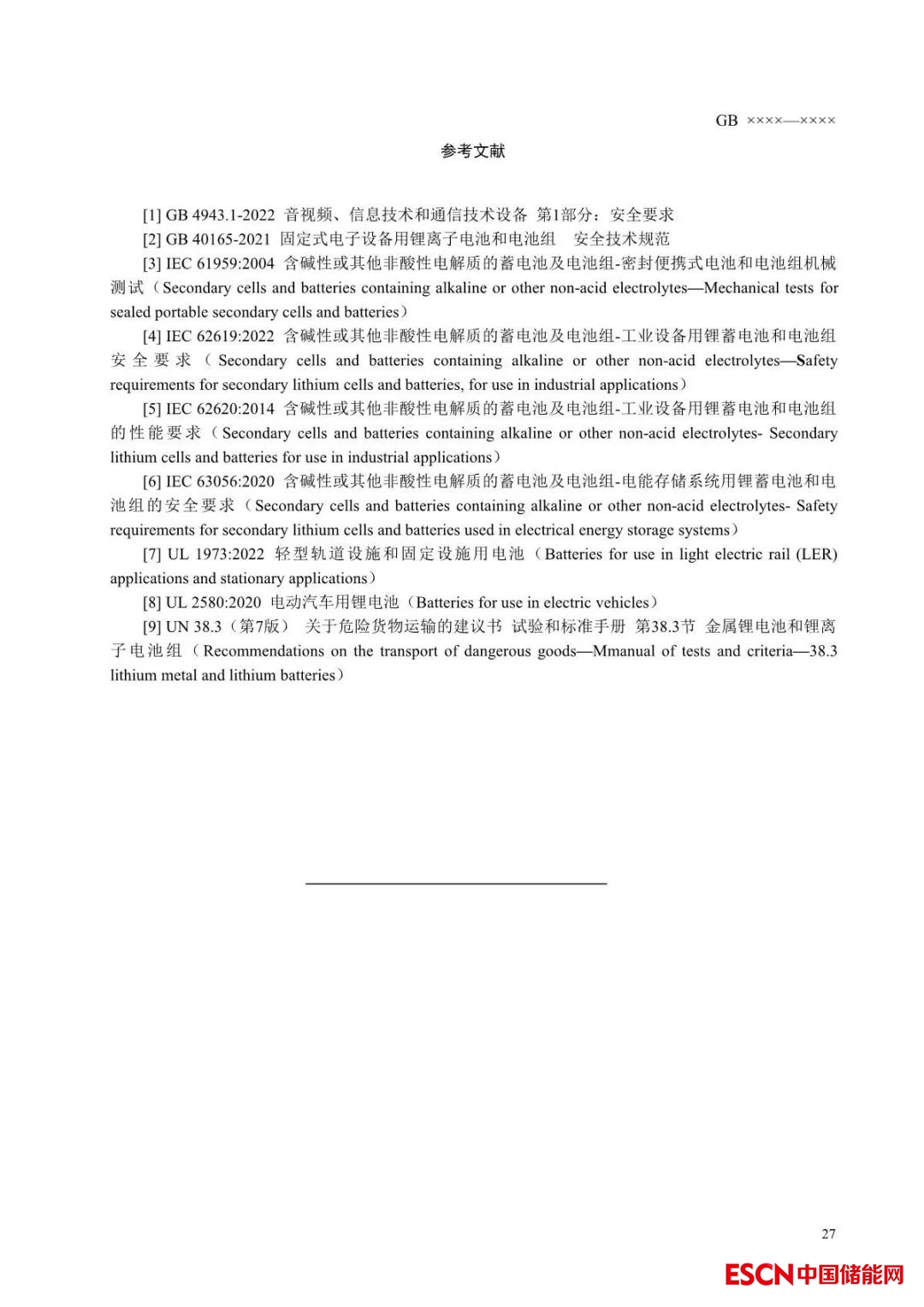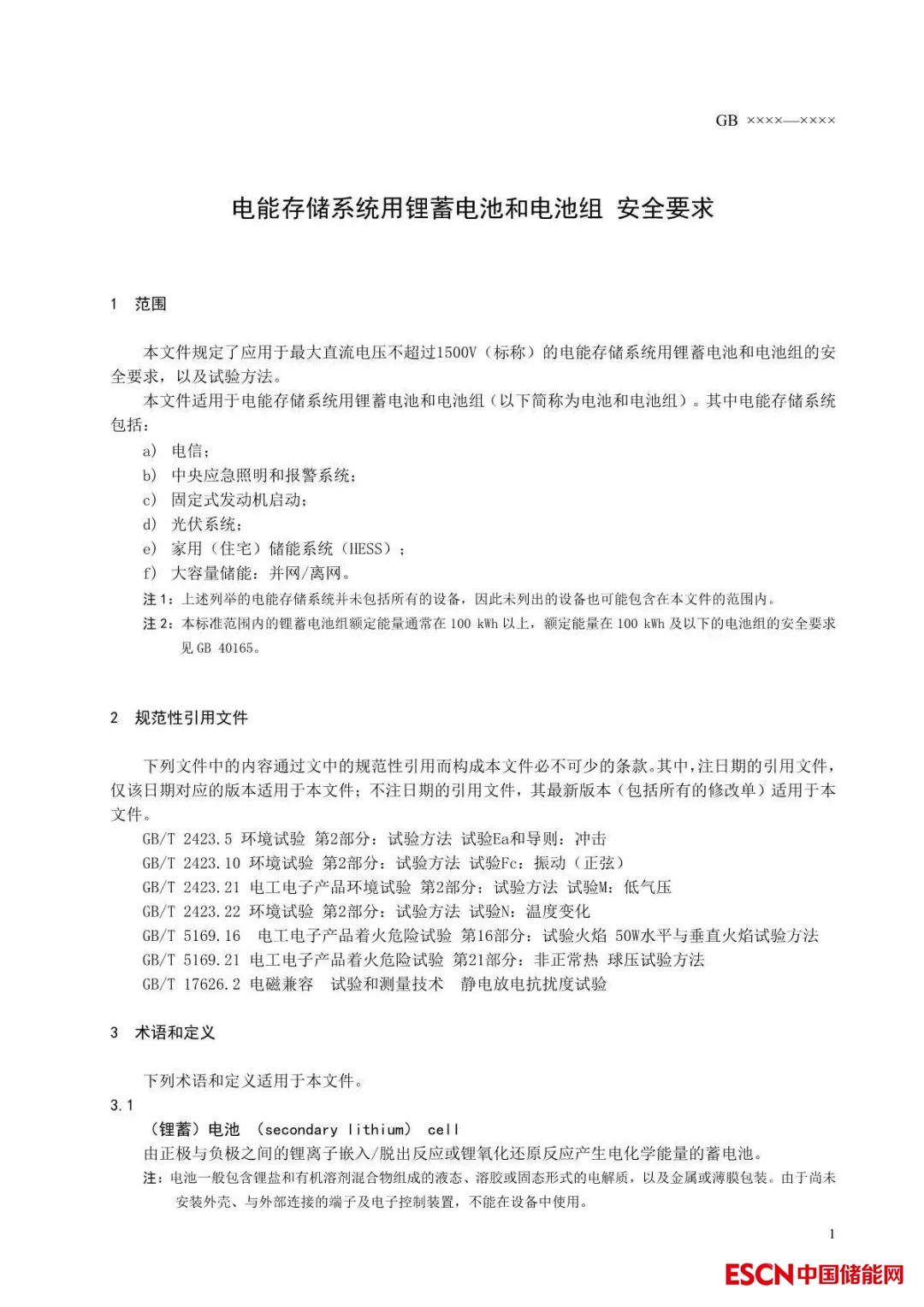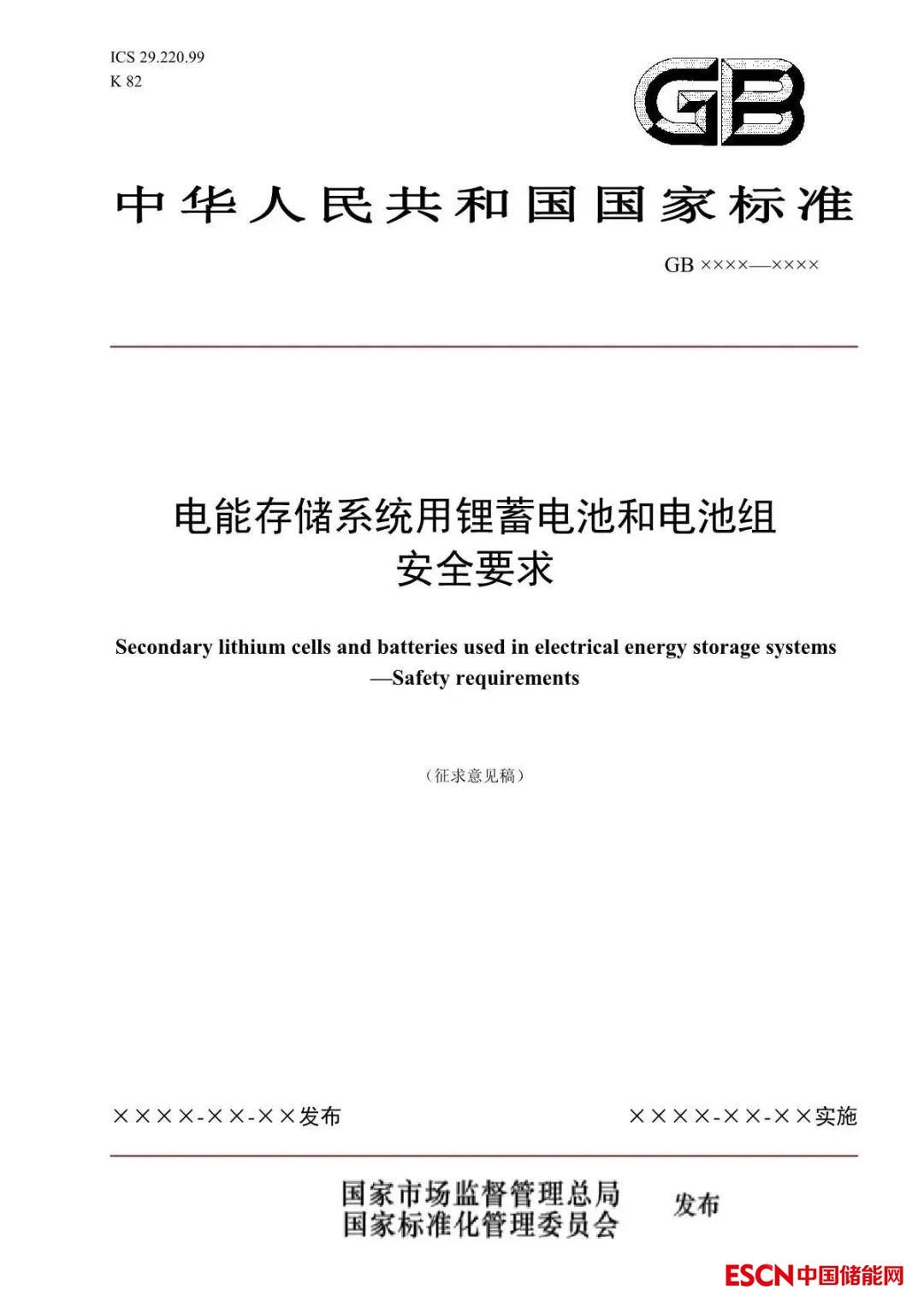公開征求對(duì)《電能存儲(chǔ)系統(tǒng)用鋰蓄電池和電池組安全要求》等3項(xiàng)強(qiáng)制性國家標(biāo)準(zhǔn)(征求意見稿)的意見