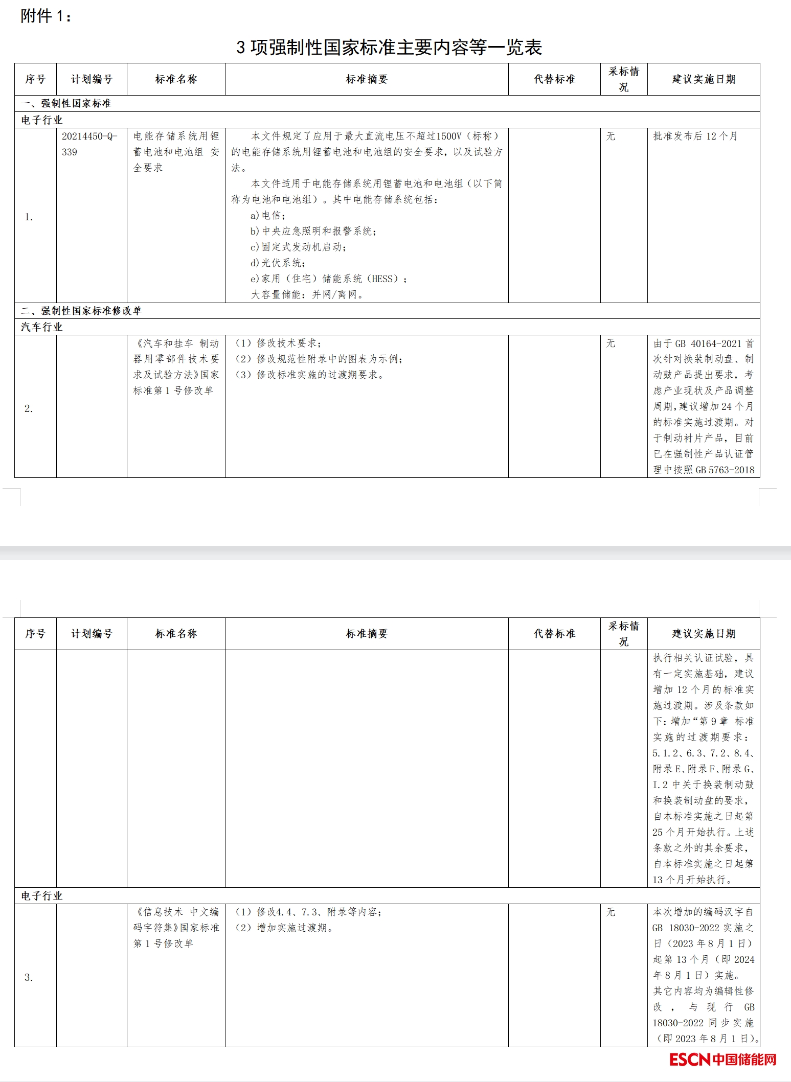 根據(jù)國家標(biāo)準(zhǔn)委下達(dá)的強(qiáng)制性國家標(biāo)準(zhǔn)制修訂計(jì)劃,工業(yè)和信息化部組織完成了《電能存儲(chǔ)系統(tǒng)用鋰蓄電池和電池組安全要求》等3項(xiàng)強(qiáng)制性國家標(biāo)準(zhǔn)(征求意見稿)的編制工作(見附件1)。為進(jìn)一步聽取社會(huì)各界意見,現(xiàn)對(duì)標(biāo)準(zhǔn)征求意見稿及編制說明(見附件2)予以公示,截止日期2023年1月18日。