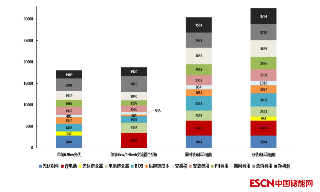 從終端用戶維度考慮,用戶在安裝戶用儲(chǔ)能系統(tǒng)時(shí),除了光伏組件、電池以及逆變器外,還需要支付許可審查費(fèi)、期間費(fèi)用、營(yíng)銷(xiāo)費(fèi)用等成本。