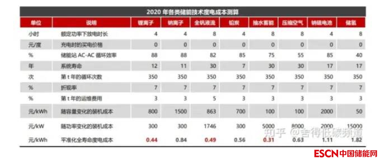 1、從2020 年來看,各類儲能技術(shù)度電成本的排序從低到高分別是:抽水蓄能<鋰離子電池<全釩液流電池<鉛炭電池<壓縮空氣<鈉離子電池<鈉硫電池<氫儲能。