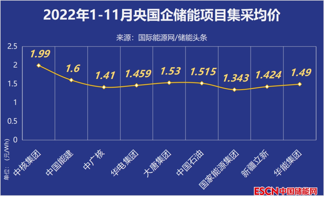 在中標(biāo)均價(jià)方面,9家企業(yè)中標(biāo)均價(jià)在1.343-1.99元/Wh。其中,中標(biāo)均價(jià)最高的開發(fā)商為中核集團(tuán),均價(jià)逼近2元/Wh;國(guó)家能源集團(tuán)開標(biāo)均價(jià)最高,為1.343元/Wh。