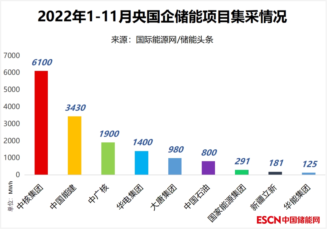 其中,中核集團(tuán)、中國(guó)能建、中廣核、華電集團(tuán)均開啟了GWh級(jí)的儲(chǔ)能招標(biāo)項(xiàng)目。其中尤以中核匯能最為大手筆,采購(gòu)6.1GWh儲(chǔ)能系統(tǒng)。
