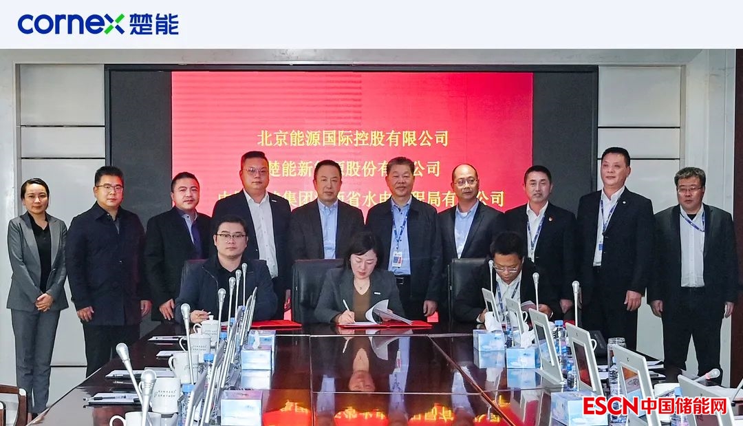 會議現(xiàn)場,中電建江西水電與楚能新能源單獨簽訂《儲能設備采購意向協(xié)議》,向楚能新能源采購2GWh的儲能設備。簽約結束后,雙方就開發(fā)河北、云南等省份的新能源大基地項目進行了深入溝通。