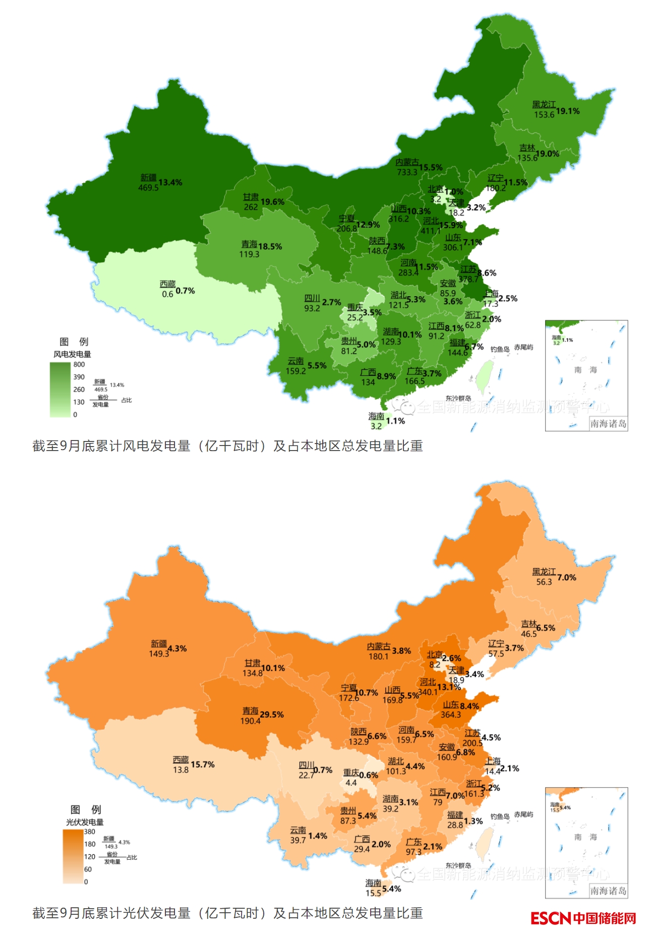 三季度,全國風(fēng)電發(fā)電量達(dá)到1581億千瓦時(shí),同比增長26.5%;光伏發(fā)電量達(dá)到1238億千瓦時(shí),同比增長40.6%。今年以來,全國風(fēng)電、光伏發(fā)電量達(dá)到8727億千瓦時(shí),同比增長21.5%;占全部發(fā)電量比重達(dá)到13.9%,同比提升2.2個(gè)百分點(diǎn)。