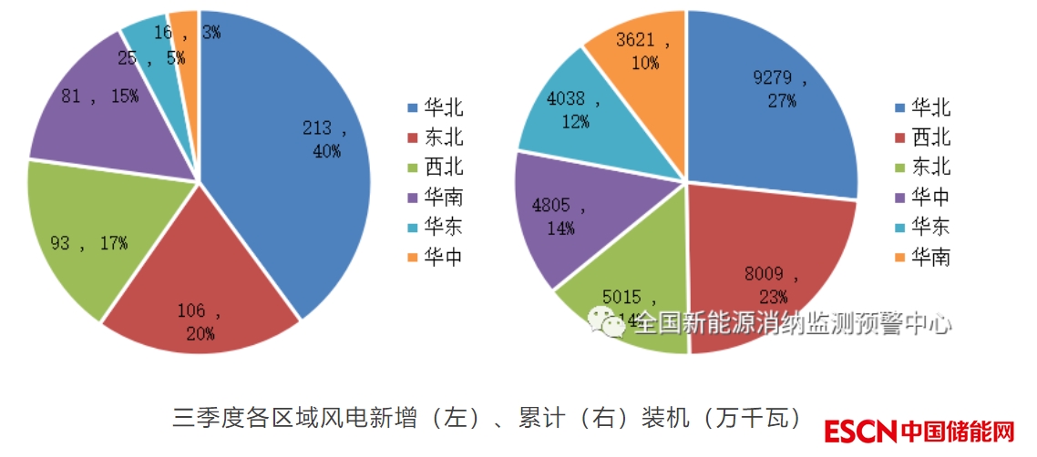 中東部和南方地區(qū)三季度新能源消納情況較好。