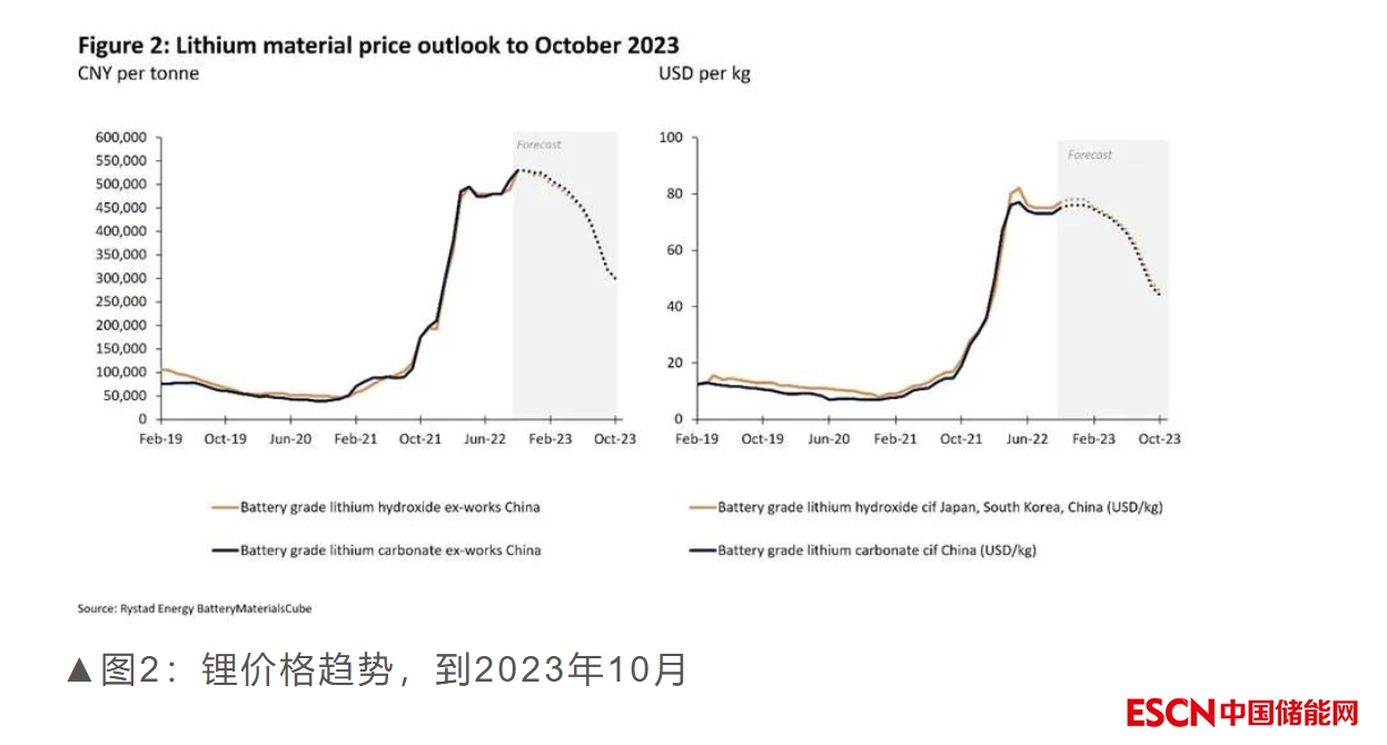如圖所示,鋰礦供應(yīng)短缺現(xiàn)象在2021年就已出現(xiàn)。當(dāng)時,鋰礦需求端增長強(qiáng)于預(yù)期,超過了供應(yīng)端產(chǎn)能的復(fù)蘇,特別是這種需求增長發(fā)生在2019至2020年鋰價暴跌、鋰礦商受到嚴(yán)重打擊的情況下。截至2020年底,我國電池級碳酸鋰的出廠價和同等級別氫氧化鋰價格與2019年初相比分別下降了近50%和60%。