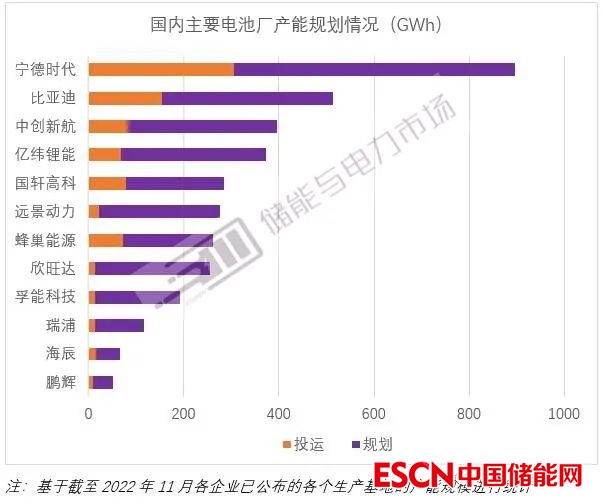 根據(jù)儲(chǔ)能與電力市場(chǎng)的統(tǒng)計(jì),國(guó)內(nèi)僅12家代表性電池企業(yè)已公布實(shí)施的工廠(chǎng)和產(chǎn)能就已經(jīng)超過(guò)3600GWh(3.6TWh),考慮到行業(yè)內(nèi)還有大量其他廠(chǎng)商也并未示弱,目前國(guó)內(nèi)電池企業(yè)總規(guī)劃產(chǎn)能超過(guò)5TWh應(yīng)該不在話(huà)下。此外,國(guó)軒高科、中創(chuàng)新航、蜂巢能源等企業(yè)都已提出了到2025年達(dá)到500或600GWh產(chǎn)能的宏偉目標(biāo),這也意味著還有大量新規(guī)劃產(chǎn)能正在路上。
