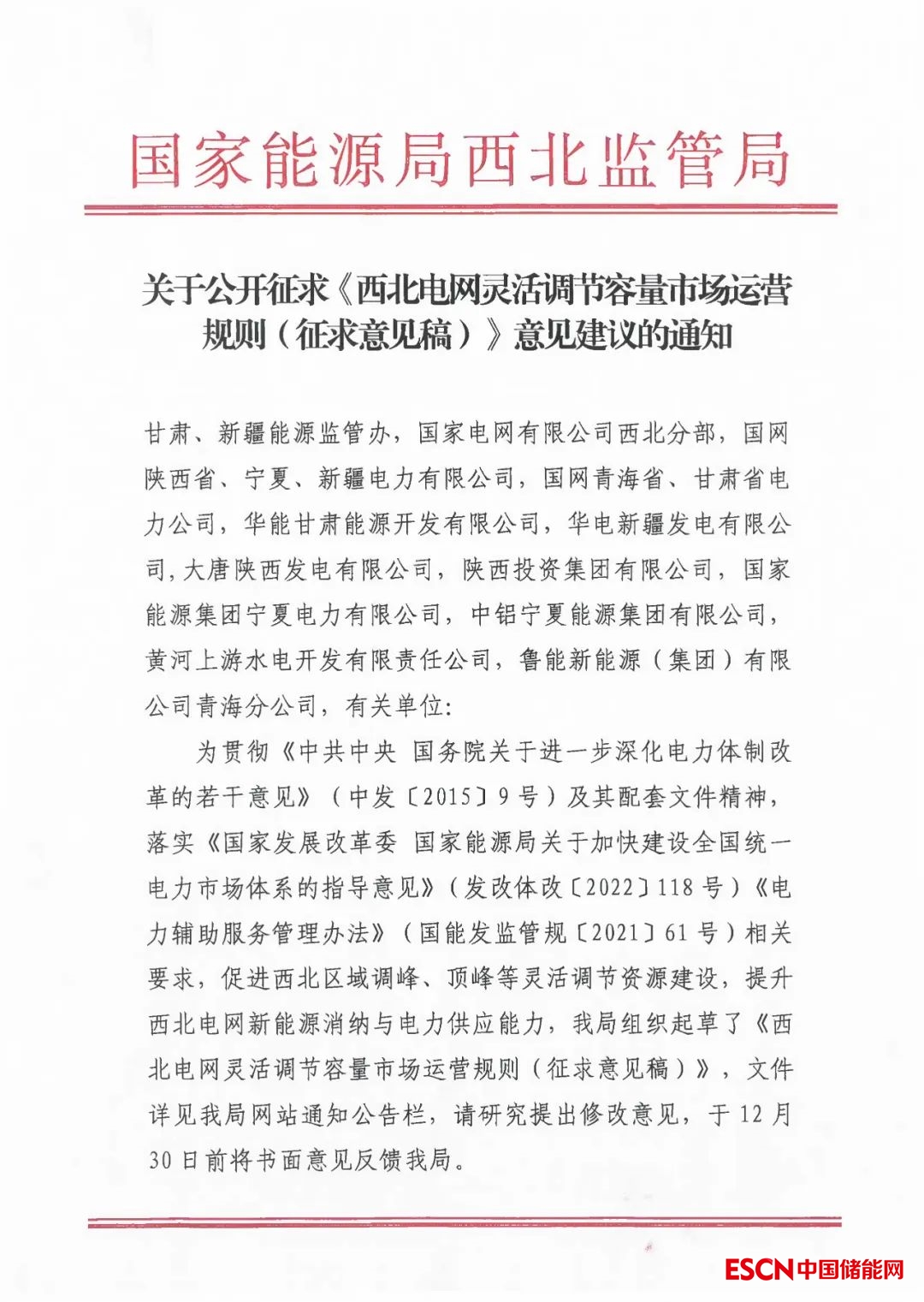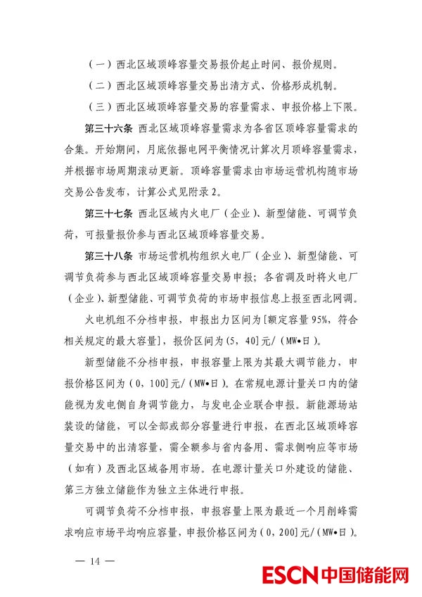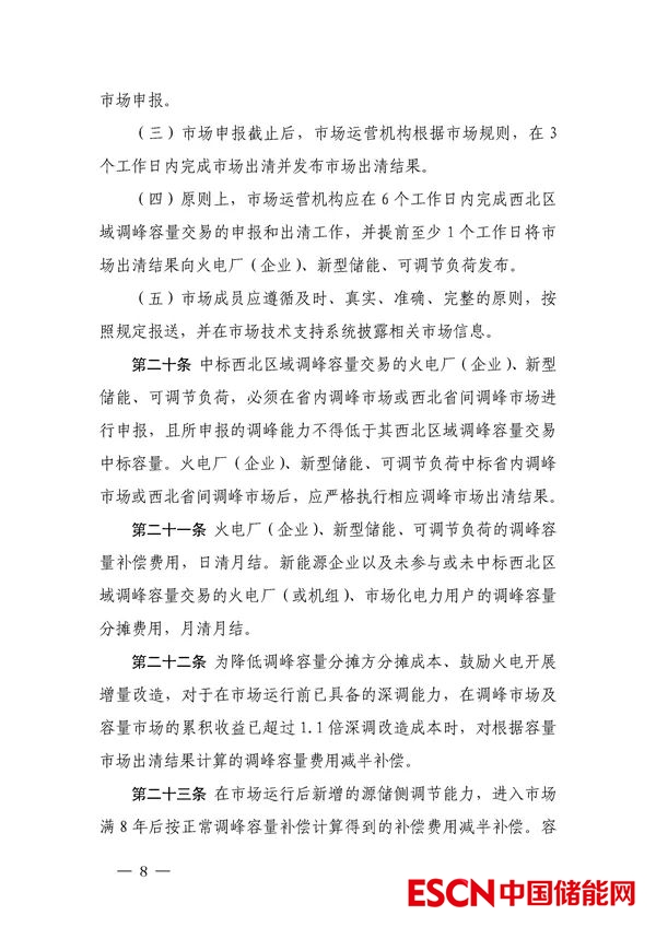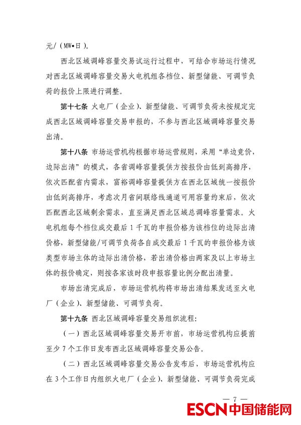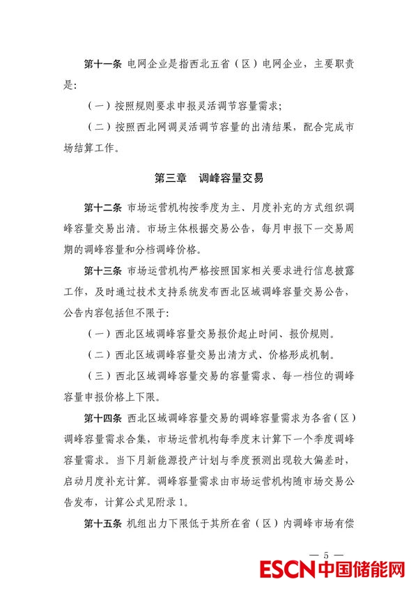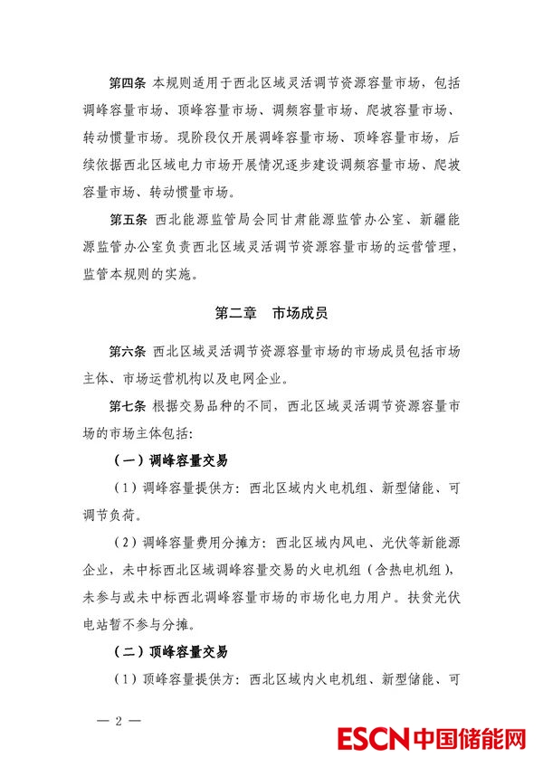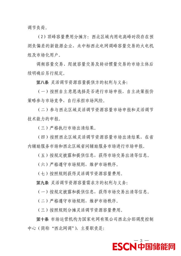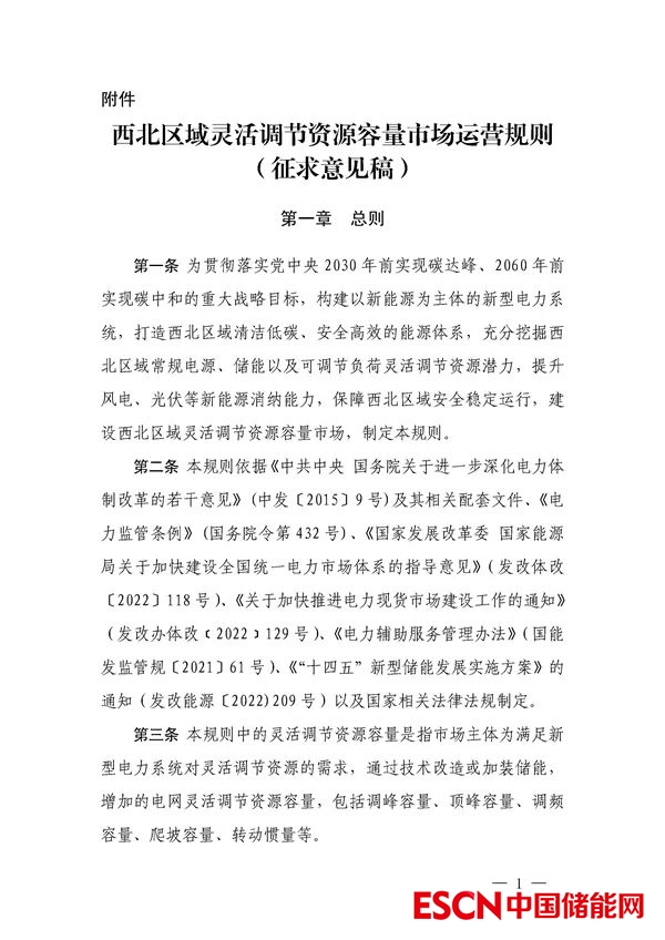 中國儲能網(wǎng)訊:12月1日,國家能源局西北監(jiān)管局發(fā)布關(guān)于公開征求《西北電網(wǎng)靈活調(diào)節(jié)容量市場運(yùn)營規(guī)則(征求意見稿)》意見建議的通知。其中,文件表示,為貫徹落實(shí)黨中央 2030 年前實(shí)現(xiàn)碳達(dá)峰、2060 年前實(shí)現(xiàn)碳中和的重大戰(zhàn)略目標(biāo),構(gòu)建以新能源為主體的新型電力系統(tǒng),打造西北區(qū)域清潔低碳、安全高效的能源體系,充分挖掘西北區(qū)域常規(guī)電源、儲能以及可調(diào)節(jié)負(fù)荷靈活調(diào)節(jié)資源潛力,提升風(fēng)電、光伏等新能源消納能力,保障西北區(qū)域安全穩(wěn)定運(yùn)行,建設(shè)西北區(qū)域靈活調(diào)節(jié)資源容量市場。