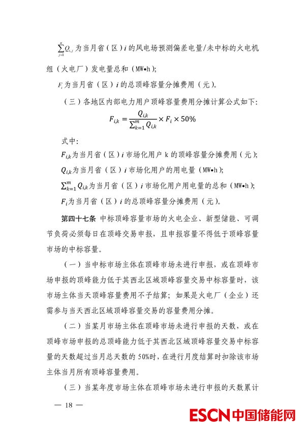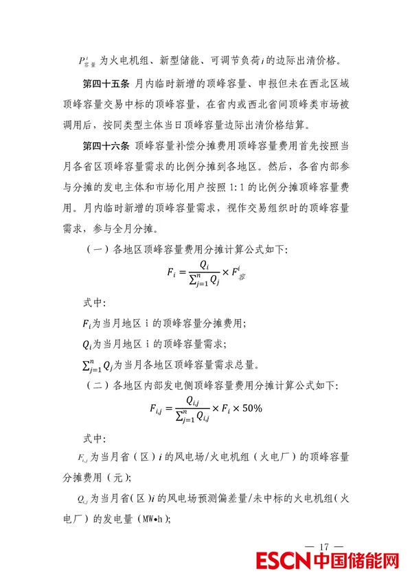 (2)頂峰容量費(fèi)用分?jǐn)偡剑何鞅眳^(qū)域內(nèi)用電高峰時段存在預(yù)測負(fù)偏差的新能源企業(yè),未中標(biāo)西北電網(wǎng)調(diào)峰容量交易的火電機(jī)組及市場化用戶。