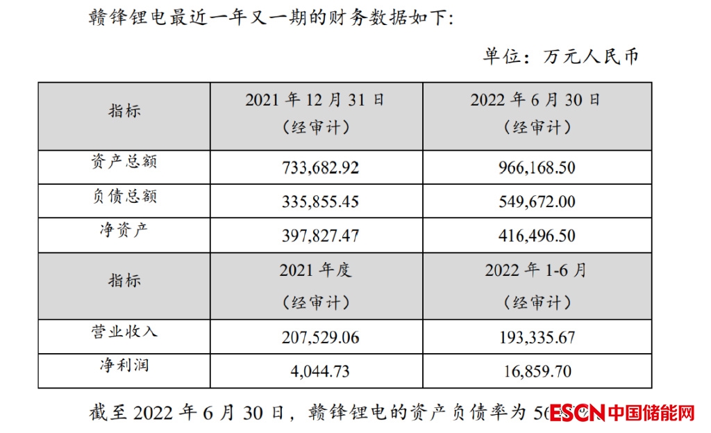 截至上半年底,贛鋒鋰電賬面總資產(chǎn)96.6億元,凈資產(chǎn)41.6億元,資產(chǎn)負(fù)債率為57%;2022年上半年公司實(shí)現(xiàn)營(yíng)收19.33億元、實(shí)現(xiàn)凈利潤(rùn)1.69億元。