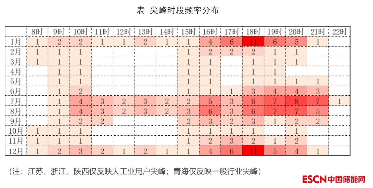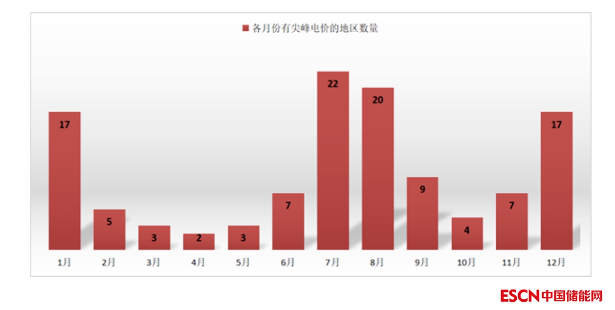 綜合各地分月度、分小時尖峰電價信息發(fā)現(xiàn),7-8月的16:00-22:00,以及12-1月的17:00-21:00是設置尖峰時段相對集中的時段,其中又以1月和12月的18:00-19:00最為突出,22個設置了尖峰時段的地區(qū)中有一半都在兩個小時劃分尖峰。