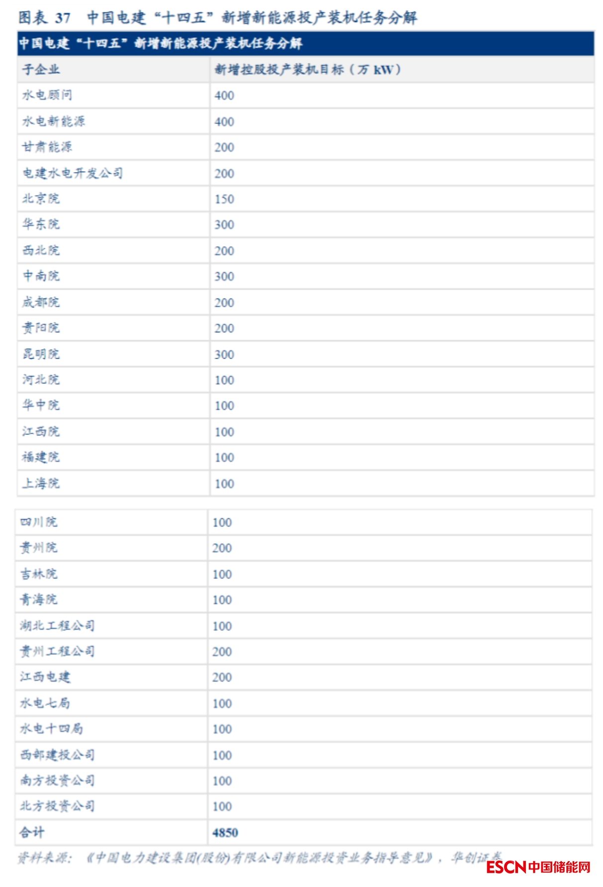 2021年初,根據(jù)中國電建印發(fā)《中國電力建設(shè)集團(tuán)(股份)有限公司新能源投資業(yè)務(wù)指導(dǎo)意見》,公司預(yù)計(jì)將于“十四五”期間在境內(nèi)外新增控股投產(chǎn)風(fēng)光電裝機(jī)容量3000萬千瓦。根據(jù)文件對下屬28個(gè)企業(yè)分解的新能源投產(chǎn)裝機(jī)任務(wù)來看,合計(jì)的新增規(guī)模將達(dá)4850萬千瓦。這是中國電建首次明確大力發(fā)展新能源投資運(yùn)營業(yè)務(wù),進(jìn)一步放寬集團(tuán)下屬企業(yè)新能源項(xiàng)目投資主體范圍。