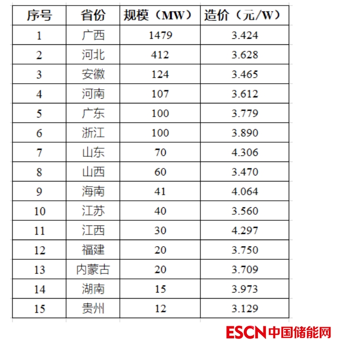 這2.63項目,分布在15省,各省項目的平均造價從3.129元/W~4.297元/W不等,均價3.55元/W。該價格低于全部分布式項目的平均中標(biāo)價格3.89元/W。各省的規(guī)模及造價如下表所示。