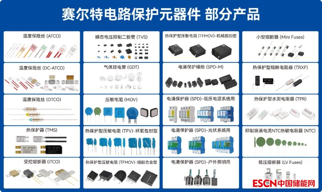 在儲能領域,賽爾特可提供多種電路安全保護元器件,解決儲能系統(tǒng)的熱故障及電氣故障。具體產(chǎn)品分別是: