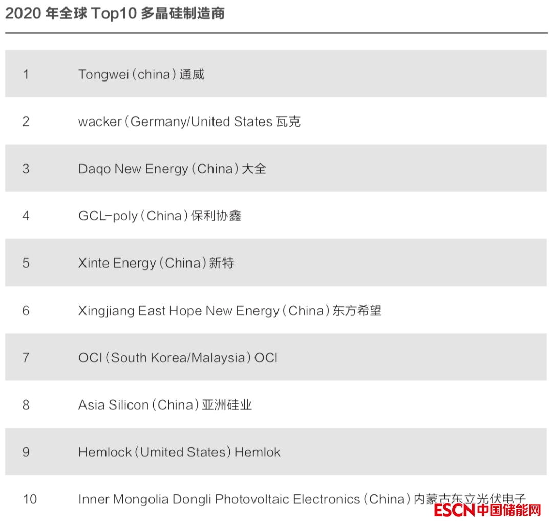 全球多晶硅產(chǎn)能主要集中于海外,以德國Waker、美國Hemlock和韓國OCI為主要的多晶硅廠商,其年產(chǎn)量均在1萬噸以上。多晶硅產(chǎn)品作為光伏產(chǎn)業(yè)鏈內(nèi)技術(shù)和資金壁壘最高的環(huán)節(jié)之一,主要生產(chǎn)工藝技術(shù)在行業(yè)發(fā)軔早期被海外產(chǎn)業(yè)巨頭封鎖。