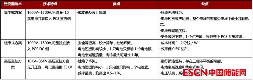 首先是從PCS硬件方面,目前,規(guī)?;娀瘜W儲能電站拓撲方式仍以低壓集中式為主。以1.26MW/2.5MWh集裝箱為例,對比3類技術(shù)方案的優(yōu)劣后,國能日新認為組串式方案設(shè)計簡單、每簇獨立、可杜絕環(huán)流,是目前三種方案中的最優(yōu)解,可延長電池壽命、提高儲能站安全性、一定程度上避免事故發(fā)生。詳細優(yōu)缺點對比請見下表: