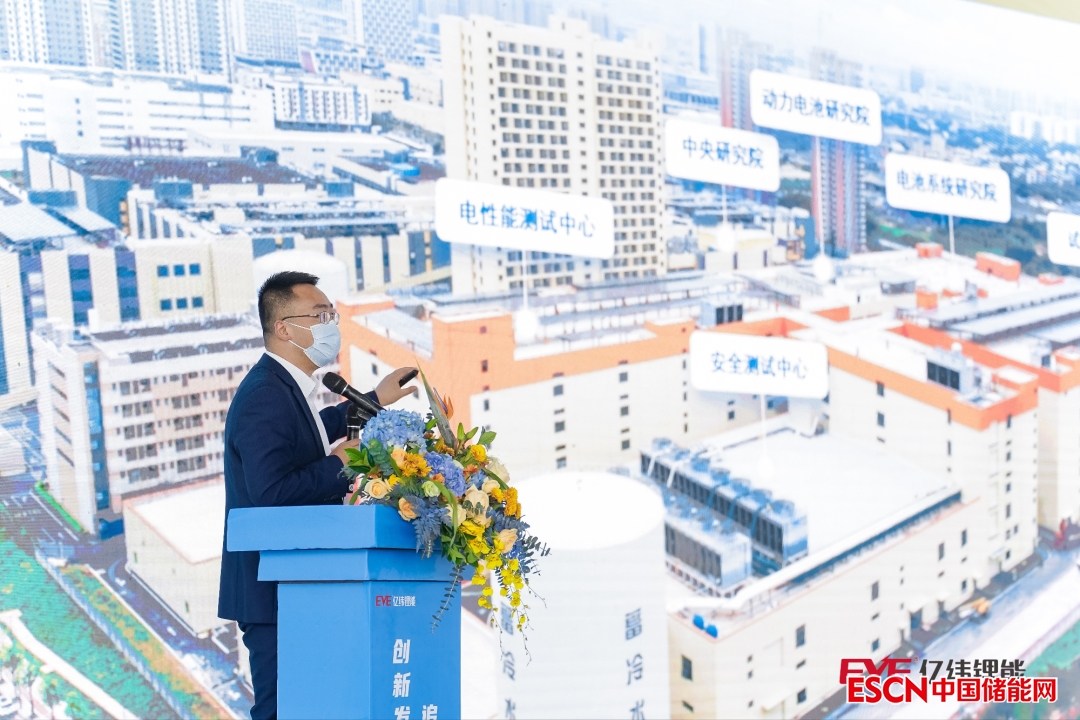 億緯鋰能動力電池研究院院長何巍博士,向現(xiàn)場的領(lǐng)導、來賓介紹億緯鋰能總部研發(fā)中心項目概況。