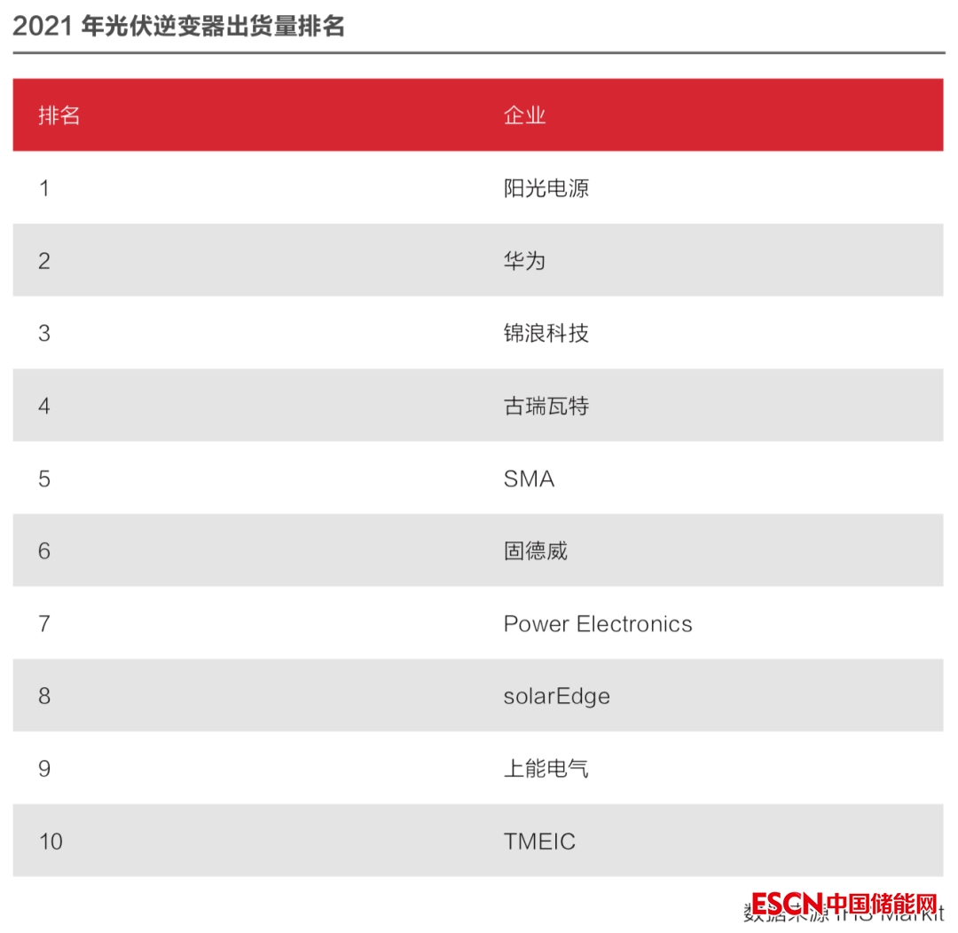 2022年6月,全球權(quán)威調(diào)研機(jī)構(gòu)IHS Markit公布了2021年全球光伏逆變器市場排行榜,在這份榜單中,中國光伏逆變器企業(yè)排名產(chǎn)生了更多的變化。