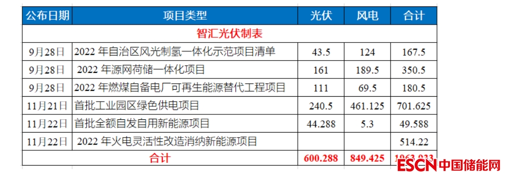 中國儲能網(wǎng)訊:2022年,內(nèi)蒙古自治區(qū)共下發(fā)了55.52GW新能源項目,包括: