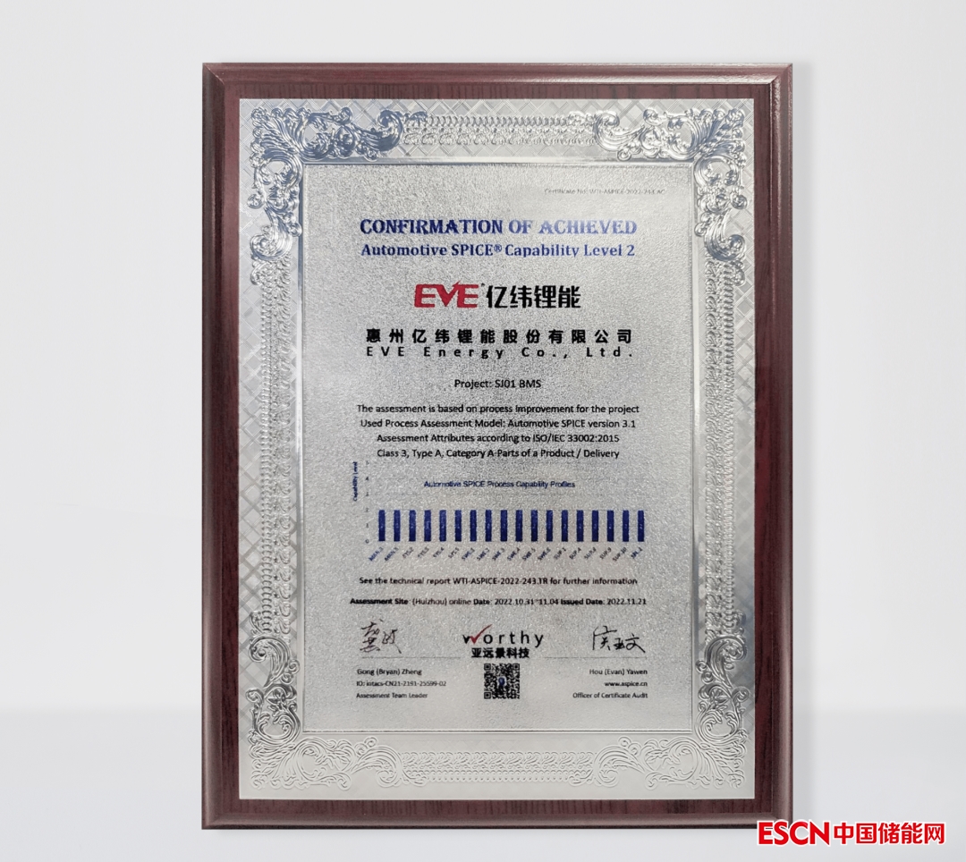 中國儲能網(wǎng)訊:近日,惠州億緯鋰能股份有限公司(以下簡稱“公司”)SJ01 BMS項目通過Automotive SPICE Capability Level 2(以下簡稱“ASPICE CL2”)認(rèn)證,標(biāo)志著公司的BMS開發(fā)能力達(dá)到國際領(lǐng)先水平。