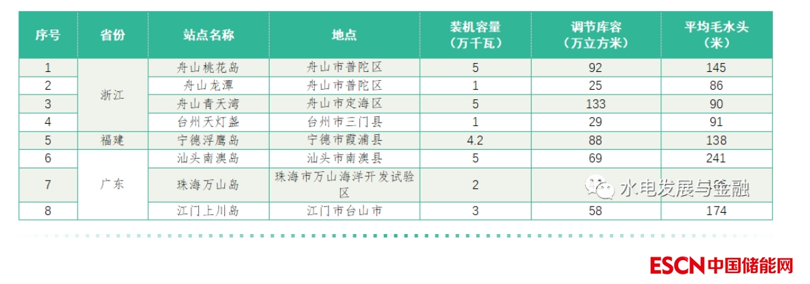 4、根據(jù)上表數(shù)據(jù),綜合考慮地形條件、工程布置、節(jié)約淡水資源等多方面因素,進(jìn)一步篩選出建設(shè)條件相對(duì)較好的8個(gè)典型站點(diǎn),分布在浙江、福建、廣東3省,詳情見下表。