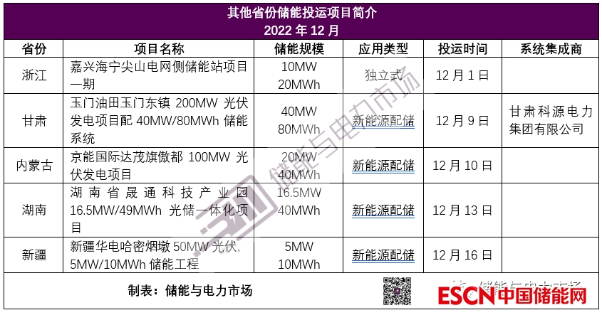 浙江、甘肅、內(nèi)蒙古等地12月投運(yùn)項(xiàng)目如下表所示。