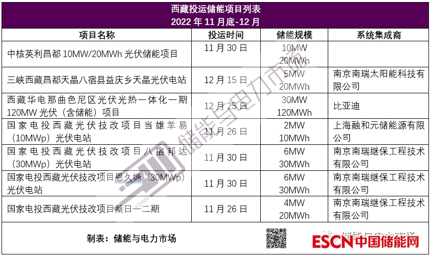 西藏12月投運(yùn)了多個(gè)光伏配儲(chǔ)項(xiàng)目,項(xiàng)目簡(jiǎn)要信息如下表所示。