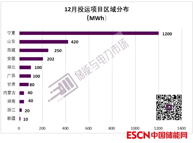 從項(xiàng)目地域分布上看,寧夏并網(wǎng)規(guī)模最大,為1200MWh,山東次之,西藏位居第三。