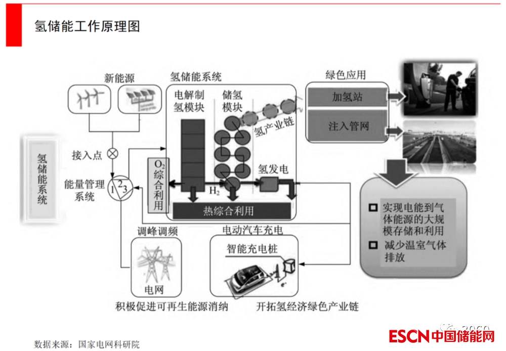 氫儲(chǔ)能:目前爭(zhēng)議還很大的一種技術(shù)路徑。工作邏輯是通過(guò)電解水制氫,將多余的電能轉(zhuǎn)化為氫能儲(chǔ)存起來(lái)。氫作為儲(chǔ)能介質(zhì),還可以直接用于燃料電池。但目前大規(guī)模制氫的技術(shù)還不夠成熟,能耗很高,以及配套的氫儲(chǔ)運(yùn)技術(shù)也不夠成熟,能利用氫能的場(chǎng)景也比較少。