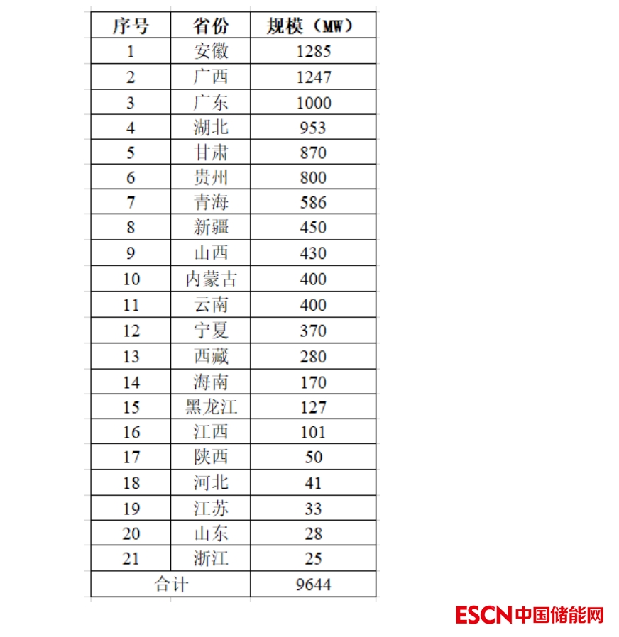 9.6GW的新增并網(wǎng)光伏項目,規(guī)模的低于分布如下表所示。