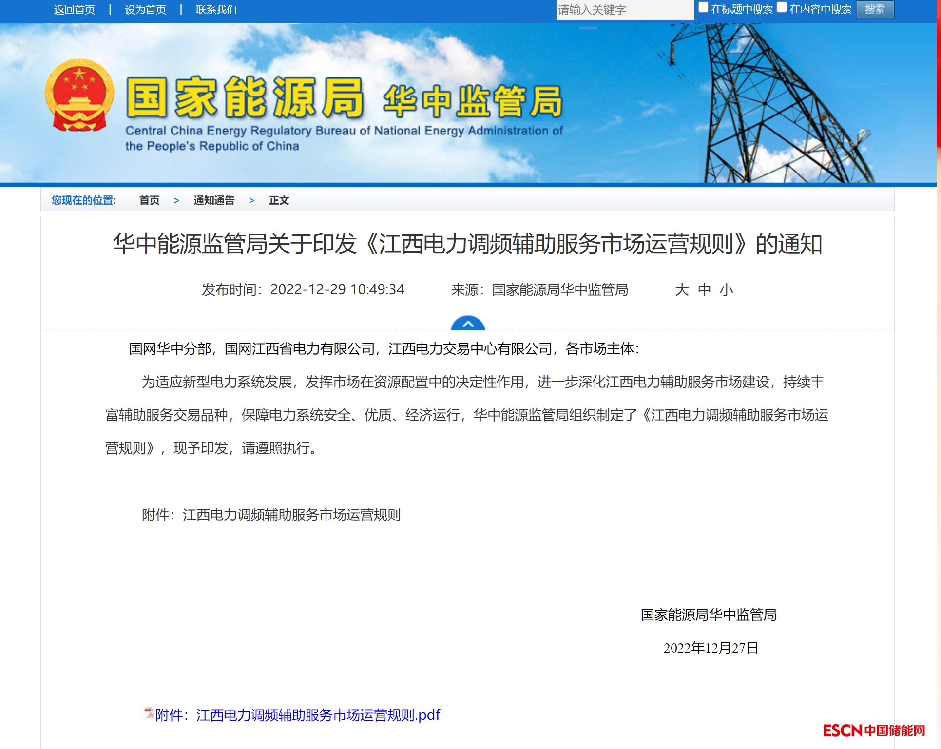 12月29日,華中能監(jiān)局印發(fā)了《江西電力調(diào)頻輔助服務(wù)市場(chǎng)運(yùn)營規(guī)則》(以下簡稱《運(yùn)營規(guī)則》),指出單機(jī)容量300MW及以上的火儲(chǔ)聯(lián)合機(jī)組、4MW/4MWh以上的獨(dú)立儲(chǔ)能電站及儲(chǔ)能裝置,風(fēng)儲(chǔ)、光儲(chǔ)可以為系統(tǒng)提供調(diào)頻輔助服務(wù)。