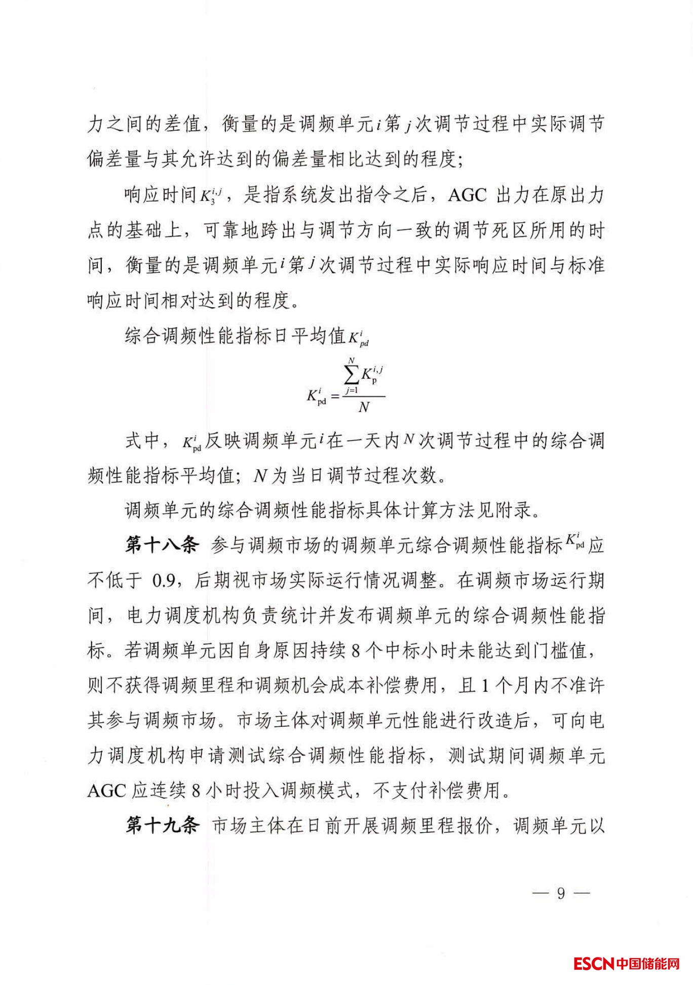 參與市場(chǎng)的調(diào)頻資源,綜合調(diào)頻性能指標(biāo)需不低于0.9。