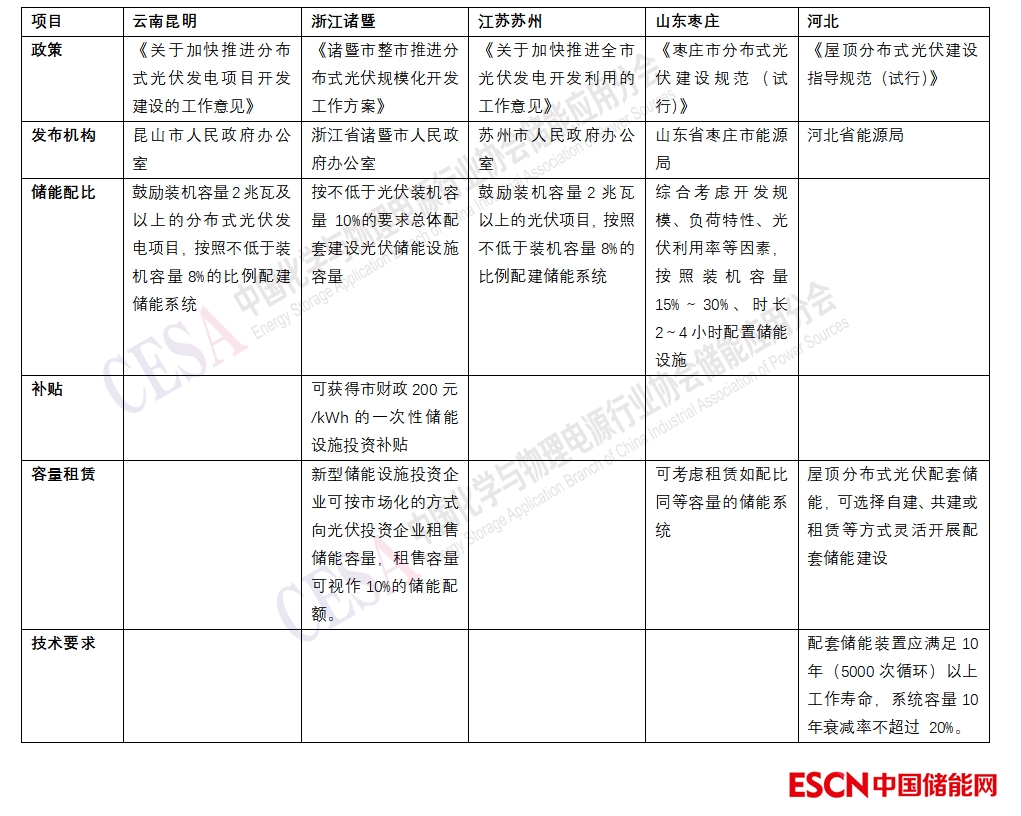 表2 各市分布式光伏強(qiáng)配儲能政策