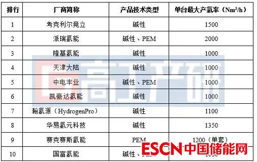 2022年中國電解水制氫設備廠商出貨量TOP 10