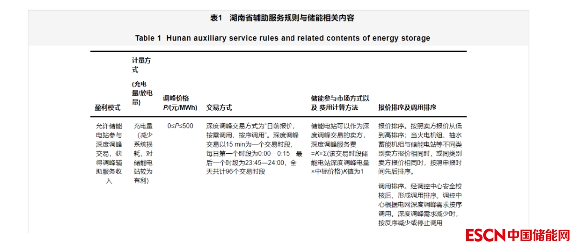 從湖南省輔助服務(wù)規(guī)則[4]來看,獨立儲能電站參與輔助服務(wù)的規(guī)則較為清晰且支持儲能發(fā)展。湖南省輔助服務(wù)與儲能相關(guān)規(guī)則見表1。