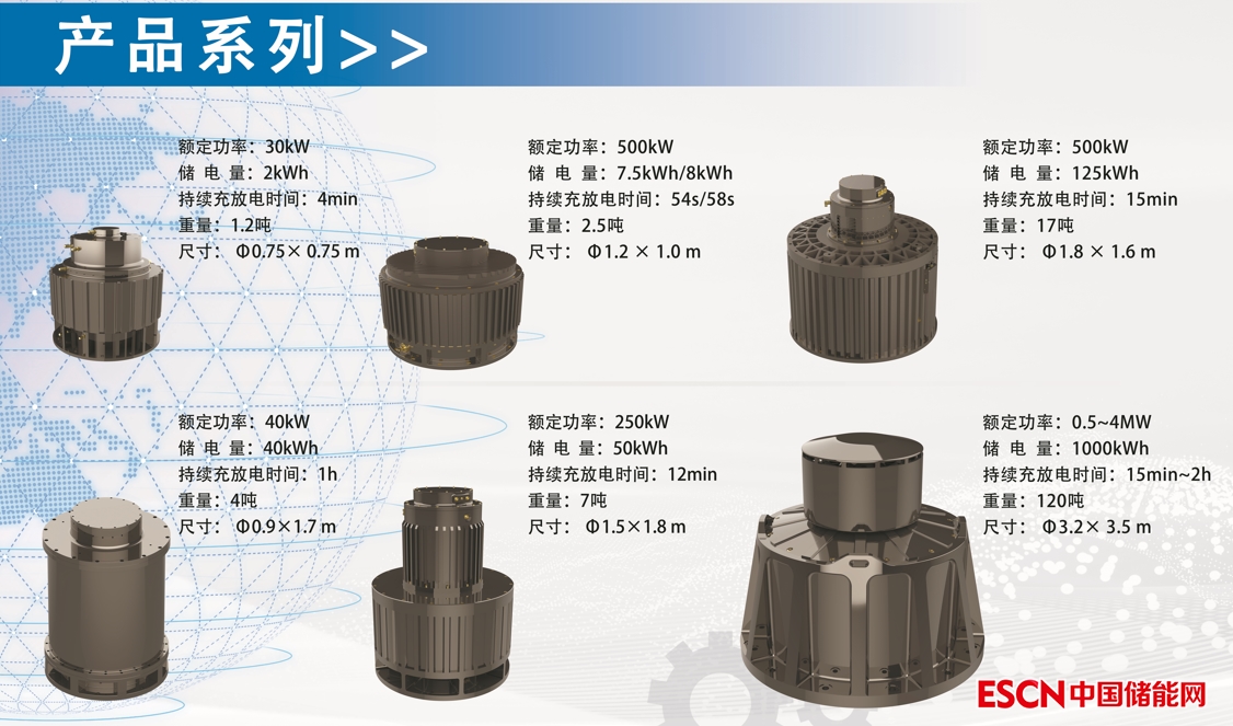 華馳動(dòng)能五自由度電力級(jí)磁懸浮儲(chǔ)能飛輪產(chǎn)品包括: 4MW/1000kWh/15分鐘、500kW/1000kWh/2小時(shí)、500kW/125kWh/15分鐘、600kW/125kWh/12分鐘、500kW/50kWh/6分鐘、500kW/8kWh/58秒、500kW/7.5kWh/54秒、40kW/40kWh/1小時(shí)和30kW/2kWh/4分鐘等覆蓋秒級(jí)、分鐘級(jí)、小時(shí)級(jí)的全系列產(chǎn)品,綜合技術(shù)指標(biāo)達(dá)到國(guó)際領(lǐng)先水平。產(chǎn)品儲(chǔ)能時(shí)長(zhǎng)由秒級(jí)跨越到15分鐘級(jí)和2小時(shí)級(jí),引領(lǐng)全球飛輪技術(shù)革命。