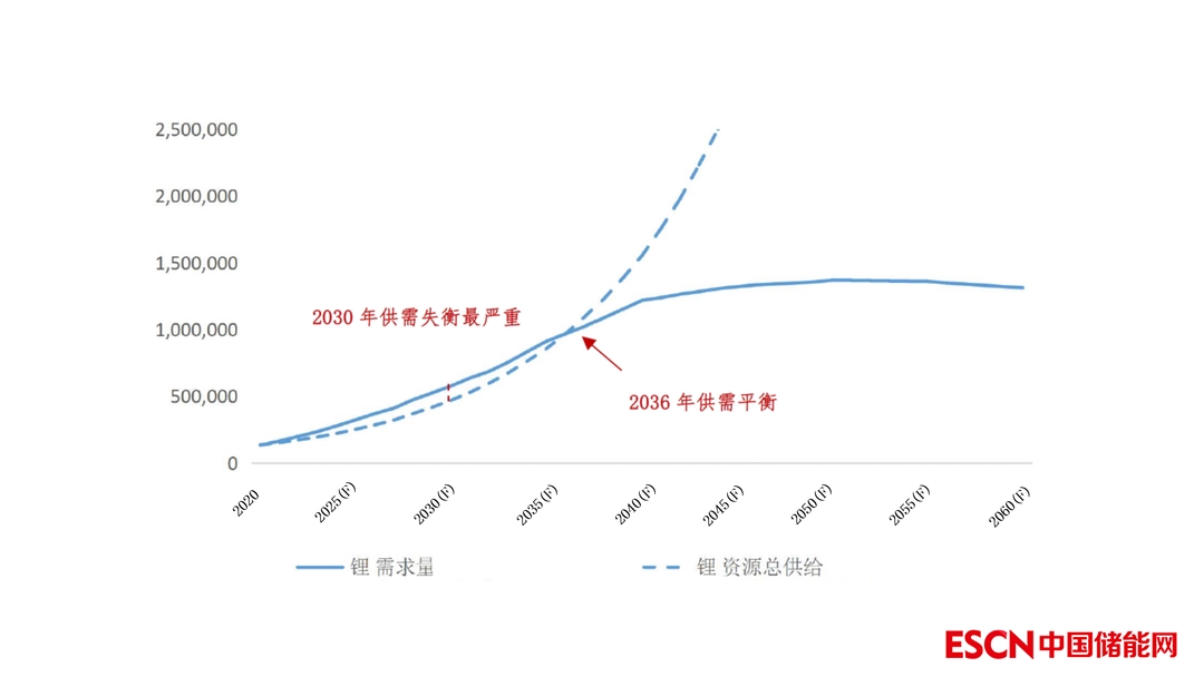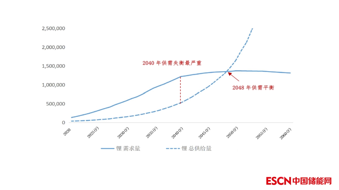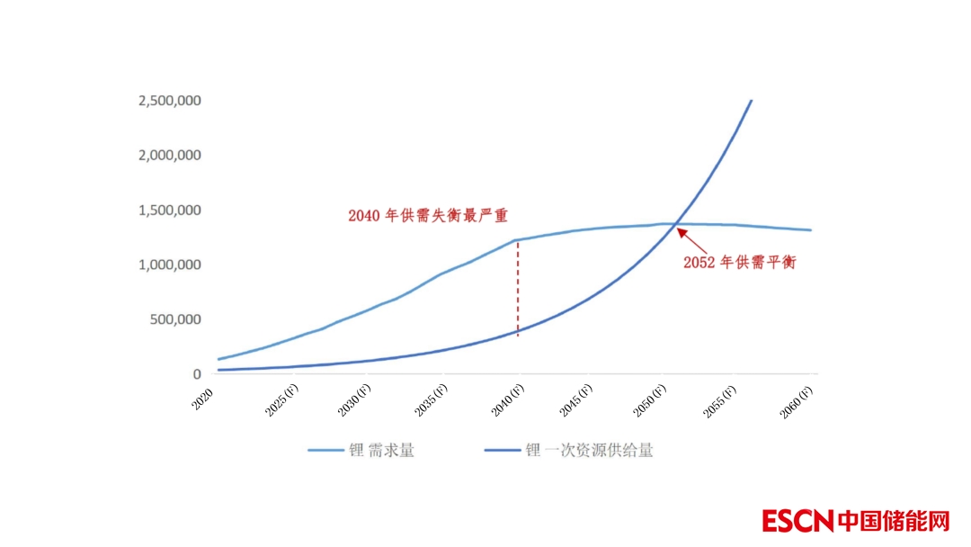 圖2 我國(guó)鋰資源自身供需曲線-考慮回收(LCE噸)