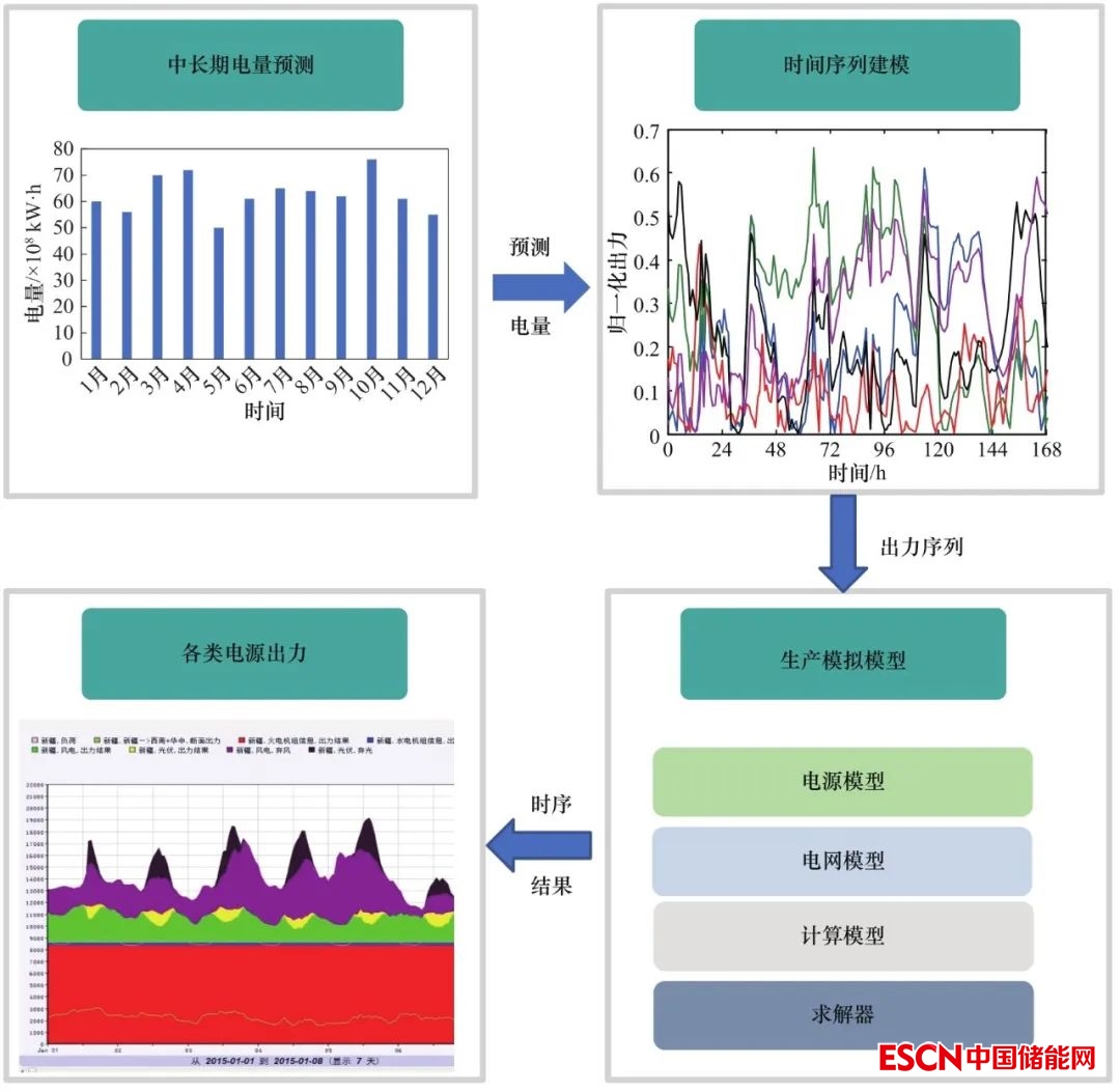 圖1 新能源電力系統(tǒng)時(shí)序生產(chǎn)模擬示意圖