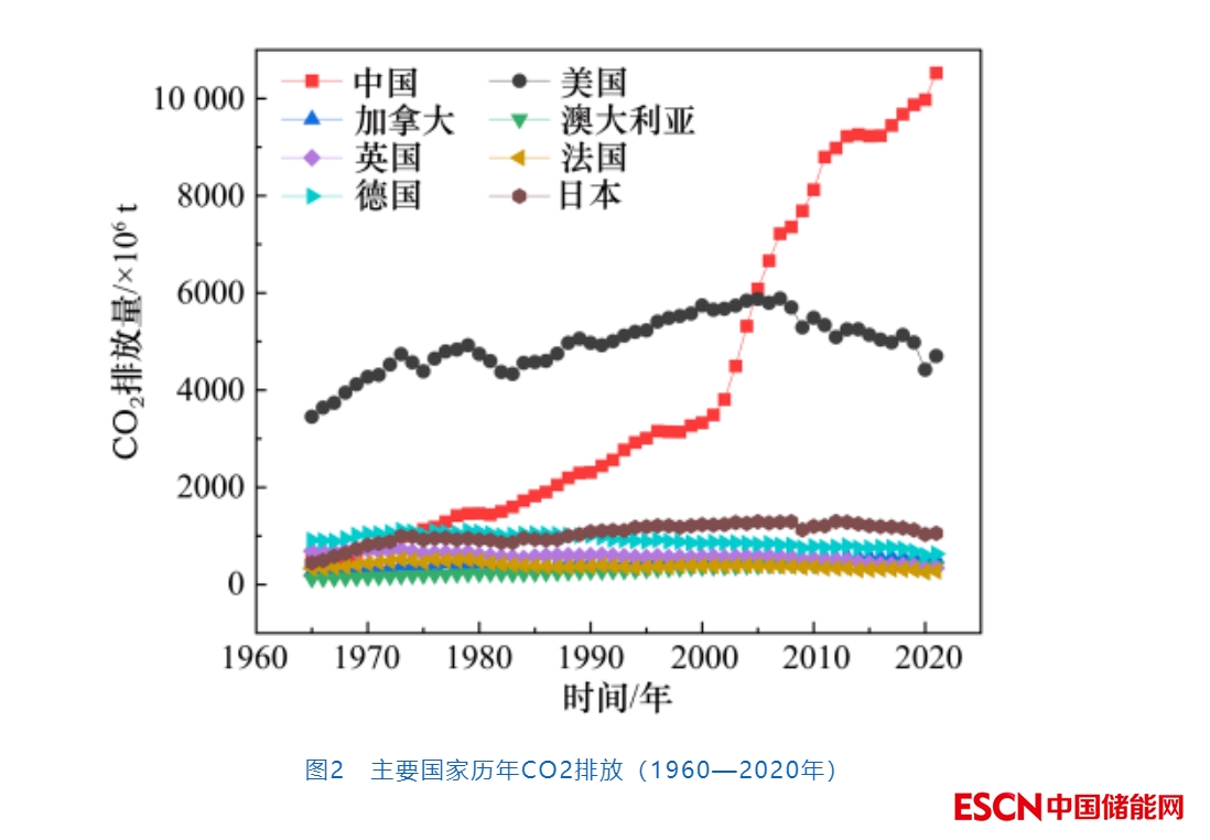 能源活動(dòng)引起的CO2排放被認(rèn)為是導(dǎo)致全球氣候變暖的主要原因。據(jù)統(tǒng)計(jì),2021年全球共排放CO2約3.898×1010 t,其中能源相關(guān)的CO2排放約3.388×1010 t,占排放總量的86.9%。我國(guó)2021年CO2排放總量約為1.204×1010 t,其中能源活動(dòng)引起的CO2排放為1.052×1010 t。電力和工業(yè)部門(mén)是我國(guó)CO2排放的主體,合計(jì)占據(jù)能源相關(guān)CO2排放的77%。