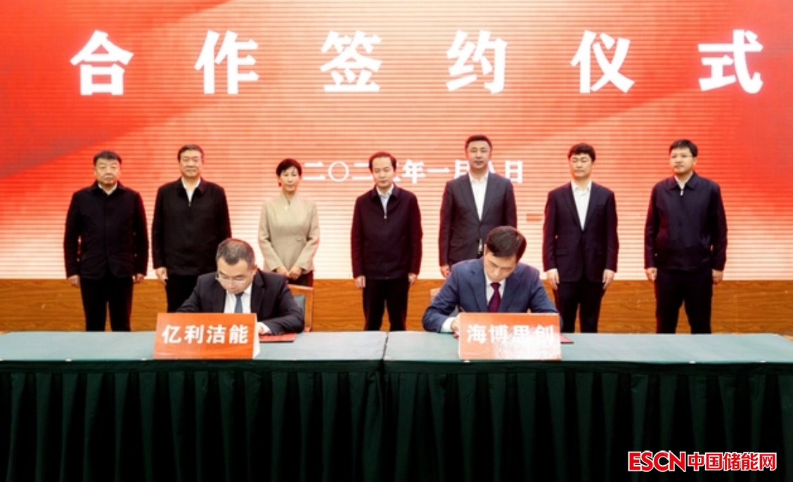 1月8日,在國家“十四五”新能源大基地建設重鎮(zhèn)之一鄂爾多斯,億利潔能(600277)與儲能翹楚海博思創(chuàng)簽署《合作協(xié)議》,雙方將成立由億利潔能控股50.5%、海博思創(chuàng)占股49.5%的合資公司,在電化學儲能整站集成、項目建設運維和電網(wǎng)服務技術以及物理儲能研發(fā)等方面開展合作,電化學儲能裝備設計產能10GWh/年以上,并開啟換電重卡和大工業(yè)園區(qū)用電側儲能新業(yè)態(tài),打造沙戈荒儲能系統(tǒng)綜合服務商,為國家沙戈荒新能源大基地產業(yè)鏈提供戰(zhàn)略支撐。鄂爾多斯市市長杜匯良、億利資源集團董事長王文彪、海博思創(chuàng)董事長張劍輝等出席簽約活動。在簽約活動之前,杜匯良會見了王文彪和張劍輝并座談。