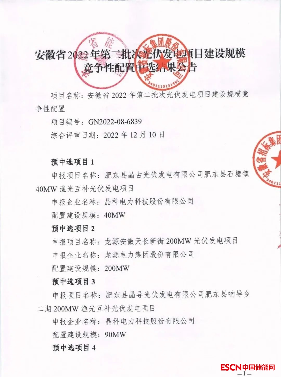 中國儲能網(wǎng)訊:1月6日,安徽省能源局公示了2022年第二批光伏、風(fēng)電項目競爭性配置優(yōu)選結(jié)果。