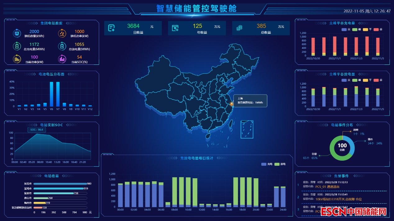 弘正智慧云平臺(tái)基于SaaS云服務(wù),主要對(duì)儲(chǔ)能電池、換流器、配電網(wǎng)絡(luò)、消防系統(tǒng)、溫控系統(tǒng)等進(jìn)行綜合性管理。平臺(tái)具有實(shí)時(shí)監(jiān)控、事件告警、收益分析、故障診斷、視頻監(jiān)控、運(yùn)維管理等多種業(yè)務(wù),其中實(shí)時(shí)監(jiān)控分布式發(fā)電、電池充放電、客戶用電情況,遠(yuǎn)程監(jiān)控儲(chǔ)能電站運(yùn)行;提供全面的運(yùn)營(yíng)管理、分析儲(chǔ)能系統(tǒng)的收益,實(shí)現(xiàn)了能源的最優(yōu)配置及利用。