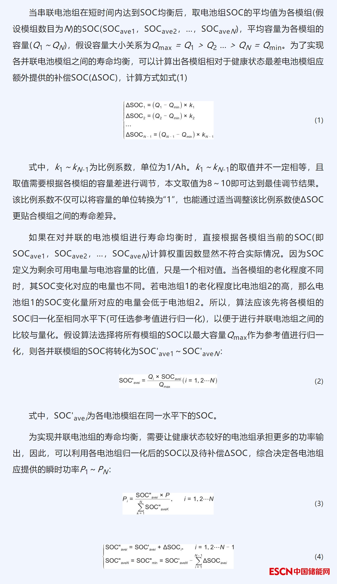 電池的內(nèi)阻、自放電率等特性都會有微小差異,具體表現(xiàn)為,串聯(lián)電池組會出現(xiàn)單體電壓分布不一致的現(xiàn)象,若不能及時均衡,可能引起特定電池單體過充、過放甚至是爆炸等危險。而并聯(lián)電池組則直接表現(xiàn)為電流分布不一致,這將導致電池能量分布與容量衰減差異。并聯(lián)電池模組不同的容量衰減,會使某些模組提前到達截止壽命,破壞了多個并聯(lián)模組之間互為備份的關(guān)系,降低了系統(tǒng)整體的可靠性,且需要額外的人力去檢查,增加系統(tǒng)的維護成本。故需要對先串后并的并聯(lián)型方案進行壽命均衡處理,使各電池單體的特性盡量接近。